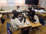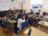 【5年生】国語 グループごとに自分たちの考えをまとめたあと、1人が説明役としてその場に残り、それ以外のメンバーは他のグループのアイデアを聞きに回りました。各グループのよいところを伝えたり自分たちにも取り入れられそうなところを見つけたりしていました。