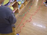 【1年生】算数「長さ」 身の回りのものの長さをテープを使って調べました。図形の学習では直接比較や間接比較をしたあと、単位を学んでいきます。