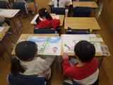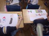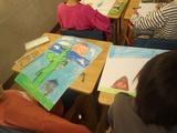 図工 お話を聞いて思い浮かべたことを絵に表しました。同じお話を聞いても一人一人違う絵になっていくのが面白いですね。
