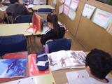 【3年生】国語 「三年とうげ」の学習をして、自分が気に入った外国のお話を紹介する分を書いています。