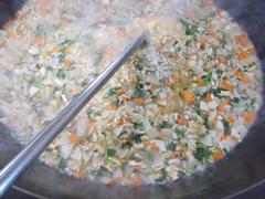 のっぺい汁には、3年性が大切に育てた小松菜を使用しています。