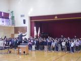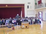 音楽 講師の先生をお招きして合唱の練習をしました。アドバイスを聞きながら練習して、体育館にきれいな歌声を響かせていました。