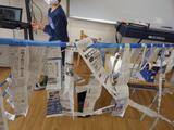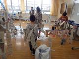 新聞紙を使って好きなものを作ったり人やものに見立てたりしながら、教室を飾っていました。途中からは、マントやマスクで自分自身を飾って楽しんでいる子どももいました。