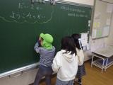 今日も幼稚園・保育園の子どもたちと交流会を行いました。休み時間に校内を案内したり、自分たちのランドセルや教室の黒板を使わせてあげたりしました。