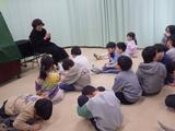 【おはなしかご】今日は城内先生をお招きして、1年生の2クラスと学習室の子どもたちが、お話や手遊びを楽しみました。