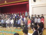退場後には、6年生の代表の子どもが5年生に挨拶をしました。今日の練習に参加してくれたことへの感謝と最高学年として宮内小学校を支えていってほしいという気持ちを伝えてくれました。