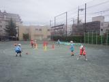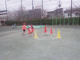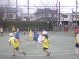 体育 「ボール投げゲーム」 円の外側からコーンを狙うチームと、コーンに当てられないように守るチームに分かれて、一生懸命走ったり投げたりしていました。