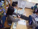 音楽 鍵盤ハーモニカとタンブリン、すず、トライアングルなどを使って「こいぬのマーチ」を演奏しました。役割を交代しながら楽しそうに演奏していました。