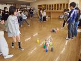 【4年生】総合 ペットボトルに色水を入れて、ボッチャ大会を開催していました。うまく倒せると仲間から歓声があがっていました。