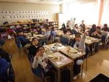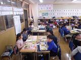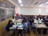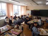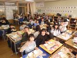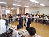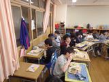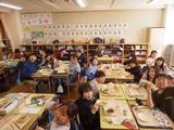 小学校最後の給食。友達との会話を楽しみながら、特別なメニューの給食を食べました。