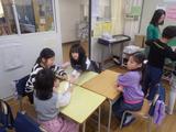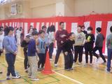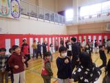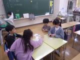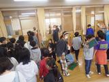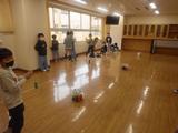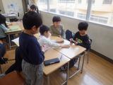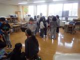 【3年生】特活室で、危なくないように工夫をしながら集会をしていました。