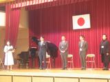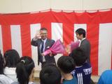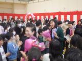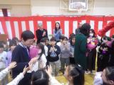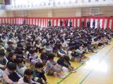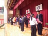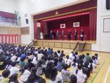 【離退任式】今年度いっぱいで宮内小学校を離れる教職員とのお別れをしました。卒業したばかりの6年生もたくさん集まってくれました。