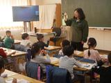 国語 動画や写真を見て、先生と一緒に鉛筆の持ち方を確認しました。
