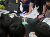 理科 ものの燃え方を調べています。今日は先生が実演したものを見て、物が燃えるときに必要なものや実験方法を考えました。