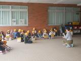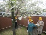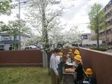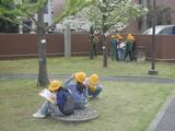 理科 春の生き物の観察をしています。ハナミズキやサクラ、イチョウなどの木の様子をよく見て、観察カードに記録していました。