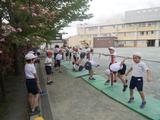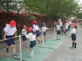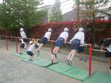 体育 鉄棒を使ってツバメや布団干しなどの基本的な技で準備運動を行いました。