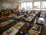 国語 ひらがなの学習が始まっています。気をつけることを確認した後、丁寧に書いていました。