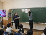 外国語 ALTのマーリー先生の自己紹介を聞いたあと、授業開始の挨拶のときに使う「気持ちを表す言葉」の練習をしました。