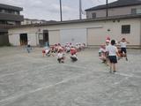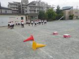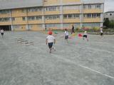 体育 小型ハードル走 箱やコーン、フラフープなど様々なものをリズムよくとび越えて走り抜けました。