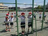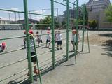 体育 ろくぼくやうんてい、ジャングルジムなどの遊具を楽しみました。ろくぼくでは、じゃんけんゲームもしました。