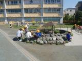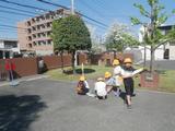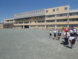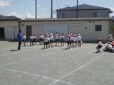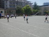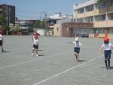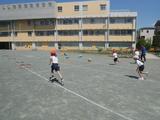 体育 今日も小型ハードル走に取り組んでいました。前回見たときよりもリズムよく跳び越しながら走っている子どもが増えていました。