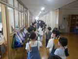 生活科 1年生を学校案内に連れていくために、まず自分たちが校内を歩いて、どんなところを案内したり紹介したりするとよいか考えています。