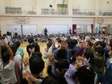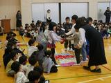 【1年生を迎える会】6年生と手をつないで入場。その後、各学年が1年生のために練習してきた歌や言葉のプレゼントが送られました。