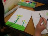 【6年生】図工 水の量や筆の使い方、色の濃さなどを工夫しながら、植物を描いていました。
