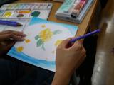 図工 水の量や筆の使い方、色の濃さなどを工夫しながら、植物を描いていました。