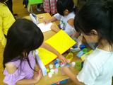 【2年生】今日は、おもちゃランド本番です。開始に向けて、2時間目や休み時間に、はりきって準備をしていました。準備の様子を見ていると「1年生が見やすいように・・・」という言葉も聞こえました。