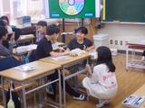 外国語 ルーレットで出たお題について、友達と英語での受け答えを楽しんでいました。