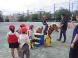 今日は宮内小に動物園がやってきました。国語や生活科の学習の一環で、動物についてのお話を聞いたり動物と触れ合ったりしました。