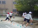 【6年生】体育 走りはば跳び 空中の姿勢や踏切に気をつけながら練習していました。次は記録を測るそうです。