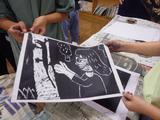 【4年生】図工 木版画 彫刻刀で彫り終わり、いよいよ印刷になりました。刷り上がった作品を見ると、思わず声が漏れたり笑顔になったりしていました。