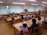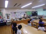 図書室で読み聞かせと読書を楽しみました。図書室は図書ボランティアの方々が秋らしい飾り付けをしてくれています。