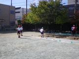 【6年生】体育 走りはば跳び 昨日と違うクラスが記録を測っていました。