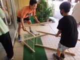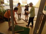 【委員会活動】暑い時期に職員玄関に避難していたウサギが飼育小屋に戻りました。飼育委員の子どもたちが、職員玄関に置いていたゲージを片付けてくれました。