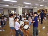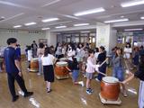 【クラブ活動】和太鼓クラブは、春日神社の例大祭に向けて、休み時間にも練習をしています。今日から1年生ホールで練習を始めたので、1年生が様子を見に来ていました。