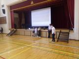 学年集会 学年みんなで体育館に集まり、実行委員の進行でゲームを楽しみました。