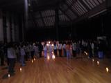 火の神と火の子たちの入場、点火からキャンドルファイヤーが始まりました。みんな参加して、厳かに始まりました。