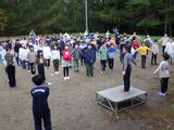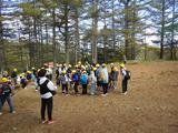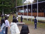 おはようございます。自然教室2日目、朝のつどいが始まりました。曇り空ですが、それほど寒くはありません。