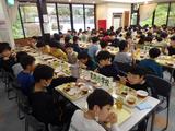 このあとは食堂で朝食となります。食堂はバイキング形式で、自分で量を考えながら準備をしていました。