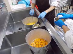 本校では中学校の給食献立や他地区の自校献立ですでに実施のあった献立を参考にしながら、ニュータンタンメンに近づけるように再現しました。
