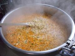 赤くて辛そうな色をパプリカ粉で再現し、豆板醤や一味唐辛子、ラー油で1年生でも食べられる辛さにしつつほんのりピリ辛を楽しめるようにしています。