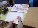 図工 物語や詩から感じたことや想像したことを絵に表します。お話を聞いて思ったことを出し合い、場面の様子を思い浮かべながら描いていました。