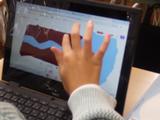 理科 流れる水の働きについて、自分なりに考えたことを図に表しています。GIGA端末を使うことで簡単に友達の考えを知ったり参考にしたりすることができます。