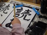 【5年生】書写 大きな手本やポイントを書いた画用紙、動画などを参考にして毛筆に取り組みました。