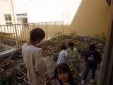 【1年生】花や種がなくなったあとのアサガオの蔓を使ってリースを作っています。