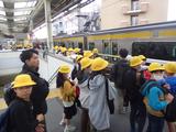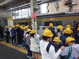 【6年生】今日は、地層見学のために生田緑地へ行きます。武蔵中原駅前に集合して、これから電車に乗ります。