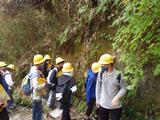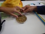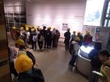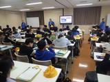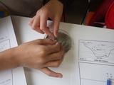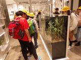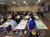 2グループに分かれました。Aグループは科学館の方からのお話を聞いたり、サンプルを見たり触ったりしながら、地層の学習をしています。